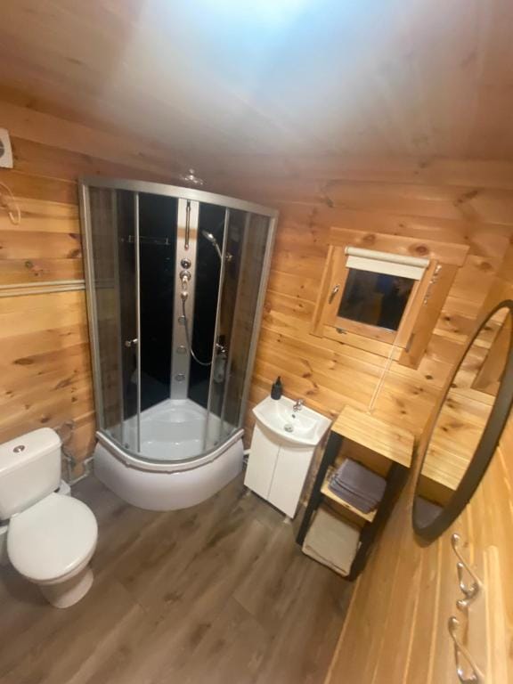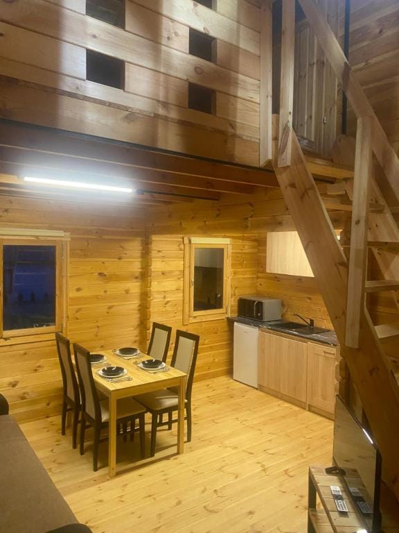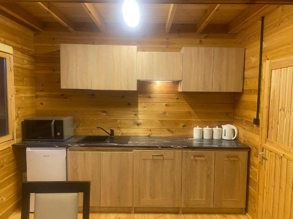 • aneks kuchenny ze standardowym wyposażeniem – lodówką, płytą kuchenną, mikrofalą, czajnikiem, air fryerem i naczyniami • łazienka z prysznicem, ręczniki
