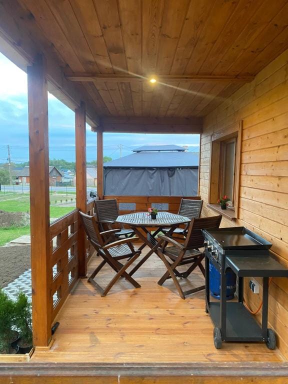 • komfortowe jacuzzi na świeżym powietrzu, umieszczone pod zadaszonym namiotem z zasłonkami