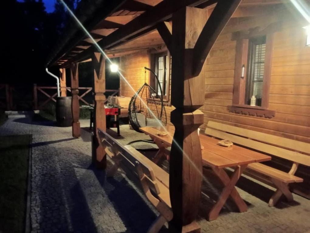 W naszym domku: zakwaterowanie jest od 15.00 wykwaterowanie do godz. 10.00. W cenie mają Państwo ręczniki i hotelowe zestawy kosmetyczne. Również informujemy, iż w naszym obiekcie dopłaty niewielkie ale jednak są: za pranie – obiekt wyposażony w pralkę, dodatkowe sprzątanie czy wymiana pościeli w trakcie pobytu oraz za pobyt zwierząt – np. pieski (jedynie rasy małe i średnie nieagresywne do 15 kg) – to są koszty do ustalenia indywidualnie. Brak możliwości ładowania samochodów elektrycznych. W naszym obiekcie nie ma możliwości organizowania imprez typu wieczory kawalerskie, panieńskie, urodziny itp. Dopowiem tylko, iż domek jak i cała działka pozostają do Państwa wyłącznej dyspozycji. Oczywiście parking na działce na auto bezpłatny. Działka duża, w części tylnej działki wyjście na las, po drugiej stronie drogi ok. 100 m rzeka Kamienna. Miejsce na grill, ognisko, domek zabawowy – wszystko jak na zdjęciach. Kuchnia jest wyposażona w pełni (mikrofala, indukcja, lodówka, toster, zmywarka), domek jest wyposażony w klimatyzację. Okolica spokojna i cicha można odpocząć, zrelaksować się, wypić poranną kawkę na dużym czy małym tarasiku, jak również spacerując po lesie, a w odległości 1 godziny sporo ciekawych miejsc do zwiedzania m. innymi Park Linowy Skarbka, Stok Narciarski i JuraPark Bałtów, Noe Park Skarżysko Kamienna, Krzemionki- obiekt Unesco, Zamek Krzyżtopór w Ujeździe, piękny i klimatyczny Sandomierz, muzeum porcelany w Ćmielowie i porcelanowy ryneczek, Zamek Ćmielów, podziemia Opatowskie i muzeum Templariuszy, pałac Kurozwęki, średniowieczny Szydłów, atrakcje turystyczne Gór Świętokrzyskich: Łysica, Święty Krzyż, Osada Średniowieczna w Hucie Szklanej, Harmonia – Świętokrzyska Zagroda Kultury w Hucie Szklanej, Park Legend w Nowej Słupi, Sabat Krajno – Park Rozrywki i Miniatur oraz stok narciarski. Nasz obiekt jest zarejestrowany w gminnej ewidencji świadczących usługi hotelarskie.